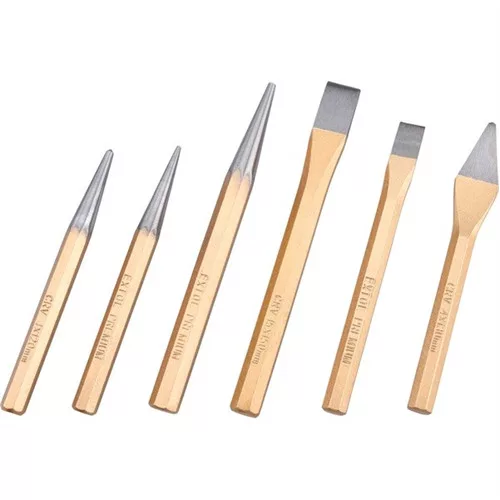 Lyukasztó pontozó és véső készlet szerszámtokban 6db/csomag CrV. hossz.:120-150mm