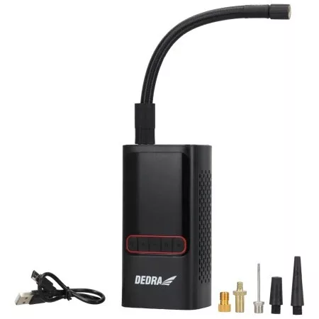 DEDRA Akkumulátoros Autó, Motor és Kerékpár pumpa 2x2000mAh-os powerbankkal 3 különböző szelep DEPP011
